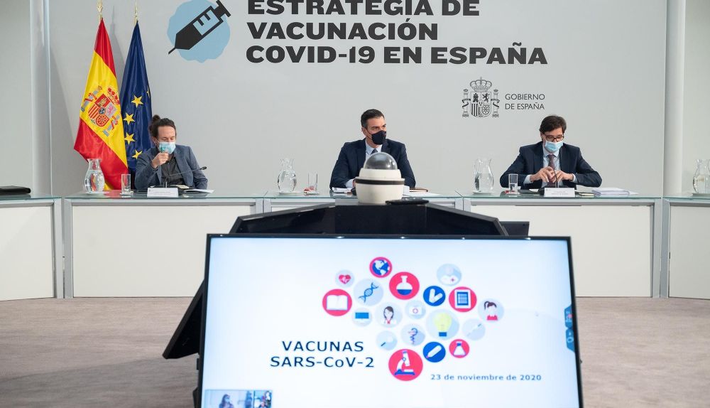 El presidente del Gobierno, Pedro Sánchez, anunció este viernes que el objetivo es que "una parte muy sustancial" de la población española esté vacunada, "con todas las garantías", en el primer semestre de 2021. Con la presentación de esta estrategia, Sánchez aseguró que España será "el primer país de la Unión Europea junto a Alemania" en tener un plan completo de vacunación. "Hemos estado trabajando desde septiembre en este plan, que será aprobado el próximo martes en Consejo de Ministros. Estamos preparados", resaltó.