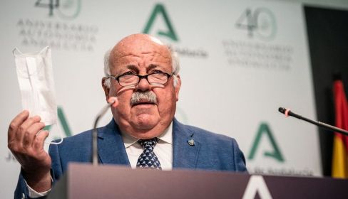 El consejero de Salud y Familias, Jesús Aguirre, ha apuntado este viernes que hasta que el nivel de inmunidad frente al coronavirus no llegue al 70-80% "se recomendará en Andalucía el uso de la mascarilla", aunque ha señalado que para el próximo curso escolar se podría ser "más laxo" en los espacios al aire libre como los recreos y las clases de Educación Física y también en la playa durante este verano.