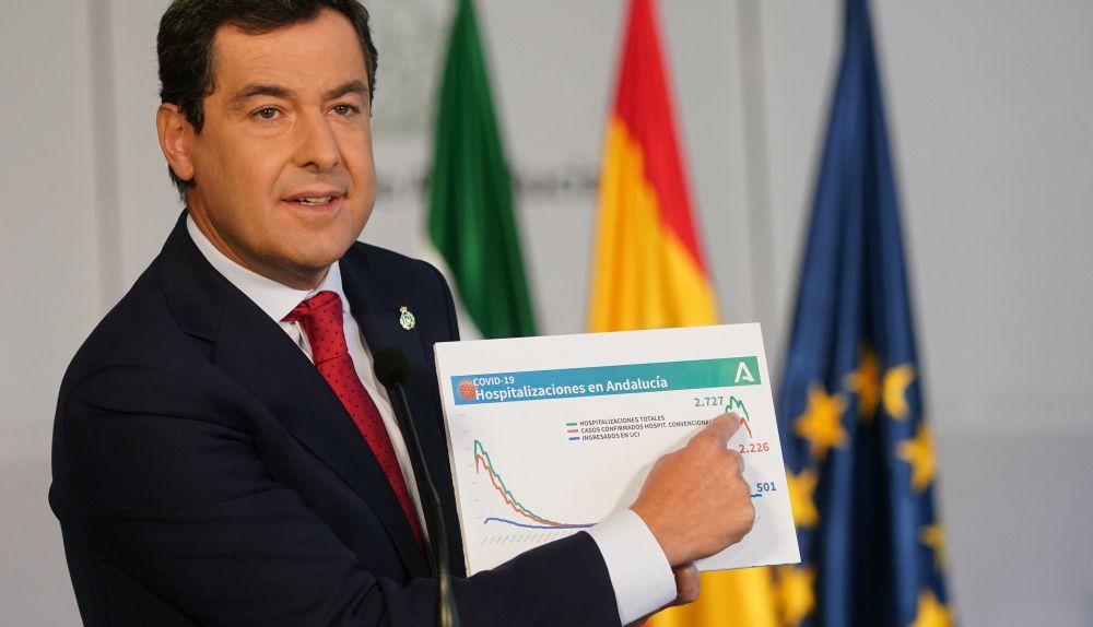 Moreno ha indicado que la situación como consecuencia del coronavirus sigue siendo complicada, ya que en Andalucía desde el principio de la pandemia son 220.000 los andaluces que se han contagiado de coronavirus y más de 3.500 los que han perdido la vida. El presidente andaluz ha señalado que en los últimos días la curva de ingresos en hospitales ha descendido de manera apreciable, pero ha incidido en que ello no supone que estemos venciendo al coronavirus porque “al coronavirus se le vencerá cuando haya vacuna o tratamiento eficaz y todavía no lo tenemos, aunque cada vez somos más optimistas”