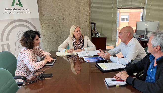 La delegada territorial de Salud y Consumo, Eva Pajares, ha mantenido esta semana una reunión con representantes de Derecho a Morir Dignamente (DMD) para conocer la asociación, así como las actividades que realizan en el ámbito provincial. A este encuentro, celebrado en la Delegación Territorial, y en el que también ha estado presente su secretaria general, Rocío Fernández, han asistido el delegado en Cádiz, así como el responsable del Grupo Local de DMD, José Sáez y Raimundo Fernández, respectivamente.