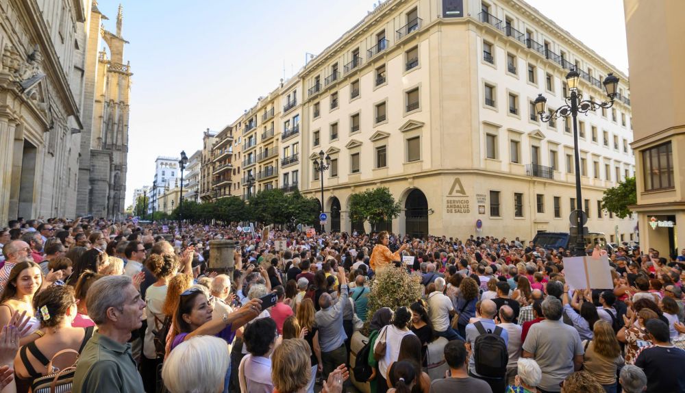 "Menos cofradías, más mamografías", "Moreno Bonilla, fuera de Sevilla", "tu gestión nos mata", o "no son casos, son vidas", son otros cánticos que se han escuchado delante de la sede del SAS.