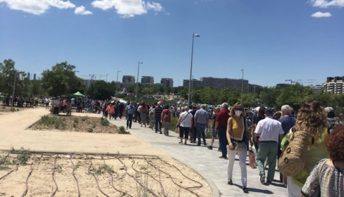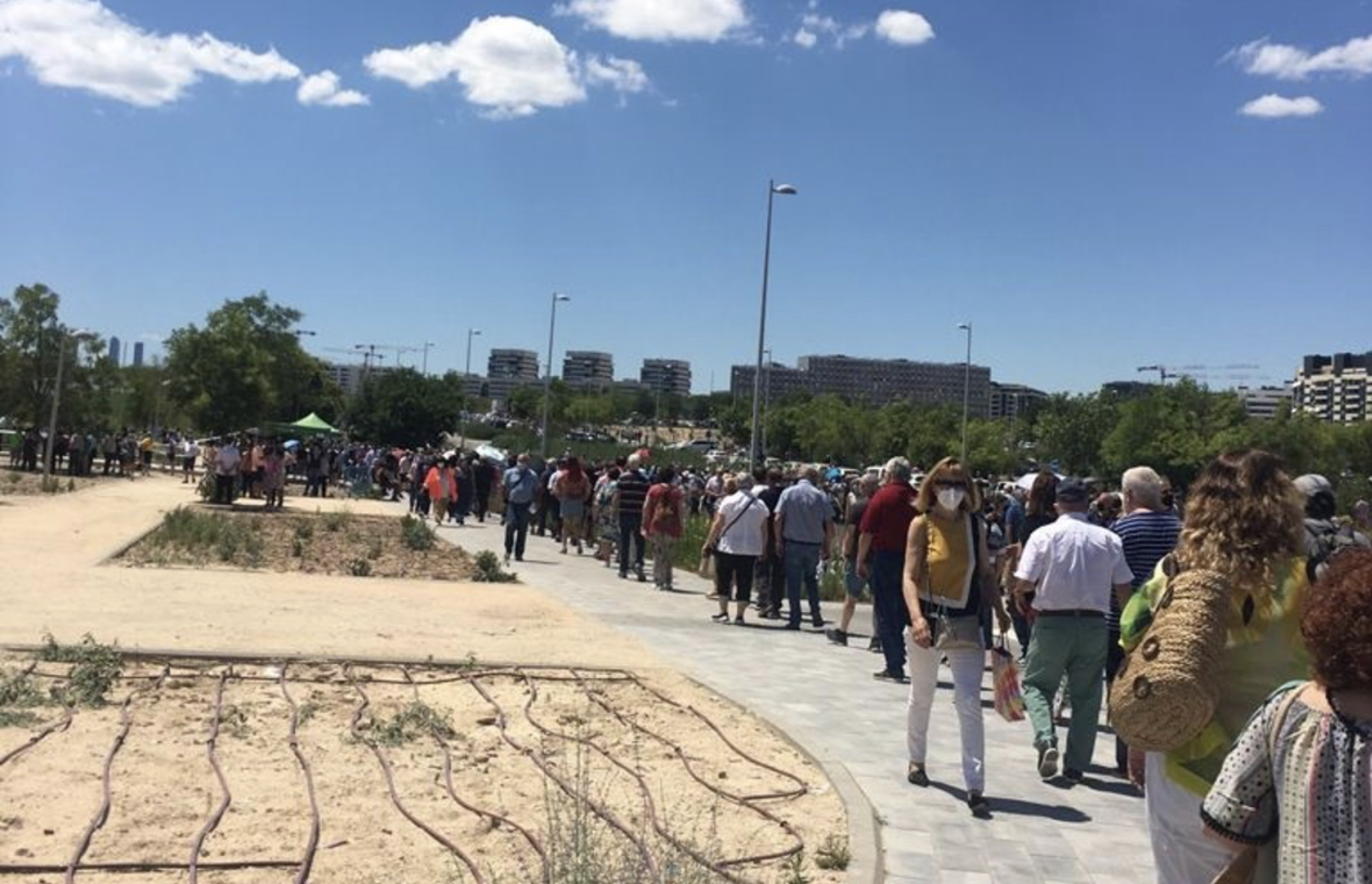 1,4 millones de vacunas en las neveras sin administrar y colas de casi una hora a pleno sol para quienes van a inyectarse el antídoto contra el covid. Es el peculiar, por decir algo, modelo Ayuso. Madrileños citados para recibir la vacuna contra la Covid-19 en el Hospital de Emergencias Enfermera Isabel Zendal, en el barrio de Valdebebas, han protestado este miércoles ante las largas colas que aseguran que han tenido que soportar bajo el sol para acceder al mismo, después de que el denominado hospital de pandemias haya reservado 30.000 citas para este pasado miércoles, 8.000 más que un día habitual.