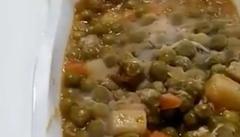 La última problemática es con los almuerzos. En bandejas de precocinados, el servicio está contratado con una empresa externa. Además de quejas sobre la calidad de algunos menús, con desayunos con piezas de bollería o zumos envasados, un paciente ha dado a conocer que los guisantes que le sirvieron días atrás tenían moho, por lo que eran incomestibles. En un primer vídeo se muestra que estos guisantes tienen una capa blanca en la zona superior, por lo que muchos usuarios en redes sociales sugirieron que el problema estaba al calentar y que se tratía de comida congelada.