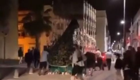 El paso de palio de la hermandad de la Esperanza de Sanlúcar ha sido trasladado para llevar a cabo sus cultos en una de las pocas imágenes de pasos en la calle esta Semana Santa 2021. En un vídeo, puede verse cómo la trabajadera trasera va empujada por costaleros, mientras por delante lleva un coche y hay ruedas para dirigir.