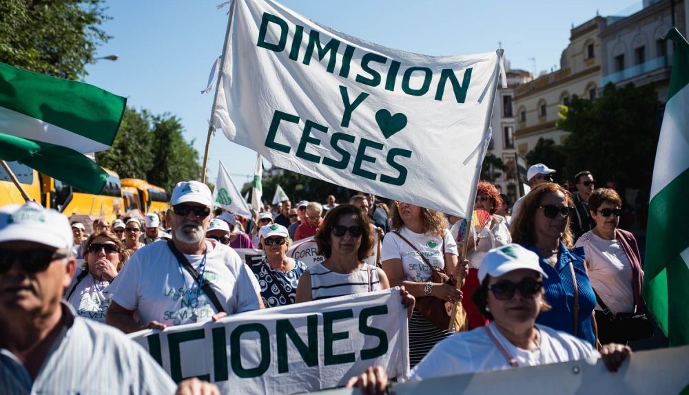 Tras las 24 horas de encierro de los alcaldes de la Campiña y la Sierra Sur de Sevilla, muchos de sus vecinos se han desplazado hasta la capital hispalense para participar en la manifestación celebrada entre el edificio de la Diputación y el Palacio de San Telmo, sede de la Presidencia de la Junta de Andalucía. Muchos han acudido con la esperanza de que Juanma Moreno saliera al balcón y accediera a recibirlos, pero se han quedado con las ganas mientras soportaban más de 30 grados.