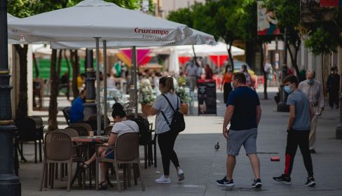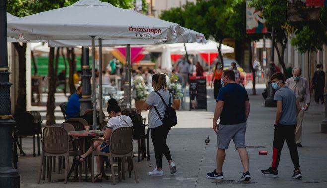 En las terrazas al aire libre se podrán ocupar la totalidad de las mesas permitidas debiendo asegurarse el mantenimiento de la debida distancia de seguridad un mínimo 1,5 metros entre las sillas de diferentes mesas. Además, se permite el servicio y consumo en barra, manteniendo la distancia antes mencionada, y las mesas tendrán un límite de 6 personas en interior y de 10 en exterior.