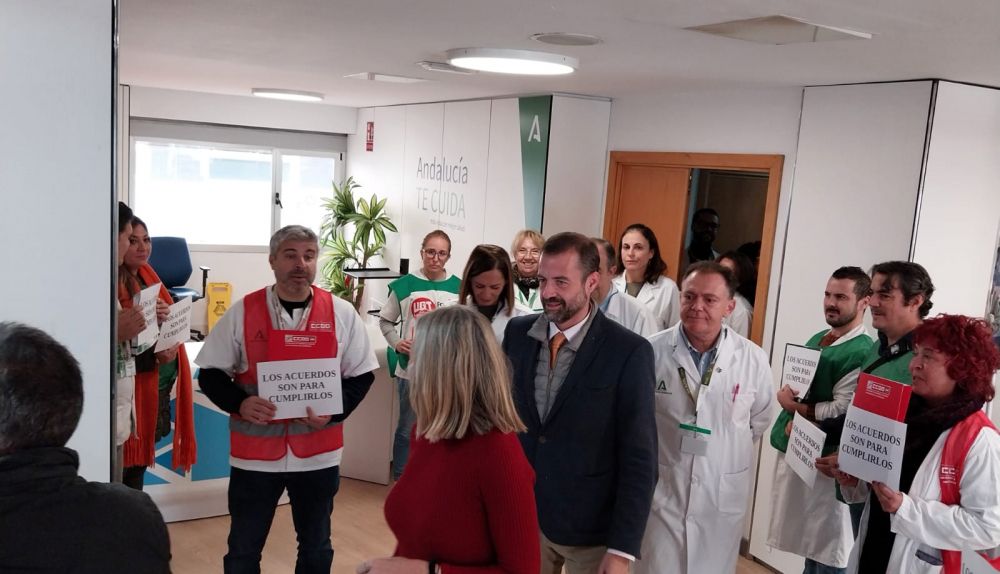 Delegados de CSIF, CCOO, Satse y UGT han esperado a Hernández con carteles en los que se podía leer que "los acuerdos están para cumplirlos". Uno de estos sindicalistas se lo ha reprochado, además, en una breve conversación en la que Hernández ha respondido diciendo que "en ello estamos".