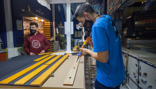 Dani y Juan son propietarios de Sushi Time. En una de las mesas centrales al paso en la plaza tienen dos grandes maderas que son la decoración interior que estará lista en breve. Un espacio pequeño, del tamaño de una minifrutería, donde caben ellos mismos sirviendo los crudos de estilo japonés a modo de food truck sin ruedas, pero enfocado a servir atún rojo de almadraba. Comenzaron hace siete años y hasta ahora les había ido bien, con eso de estar en una zona tan turística, y por contar con el apoyo de mucho comensal del pueblo. "Nos estamos adaptando al servicio a domicilio, para tenerlo más cómodo. Aquí hay que hacerlo todo. Menos fontanería, hacemos todo, eso es ser empresario", dicen entre listones.