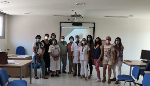 El Hospital Universitario de Jerez ha retomado el aula de la Escuela de Pacientes de Cáncer de Mama, con dos nuevas sesiones dirigidas a pacientes diagnosticadas de esta patología, concretamente a cinco. Esta escuela tiene la particularidad de que las docentes son pacientes que han pasado por el mismo proceso y que la Escuela Andaluza de Salud Pública (EASP) ha formado para que sean ellas quienes se encarguen a su vez de instruir y ayudar a sus iguales; en el caso de esta sesión en el centro jerezano han sido dos formadoras o pacientes expertas.