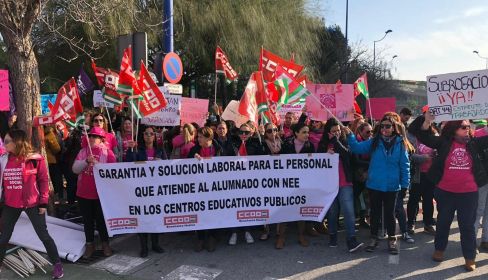 CCOO recuerda que el conflicto surge a raíz del Informe General de la Junta de Andalucía de 2016, por el que queda claro que la Agencia Pública Andaluza de Educación (APAE) no tiene competencias para la contratación del Servicio de Apoyo y Asistencia al Alumnado con Necesidades Educativas Especiales ni el de Interpretación de Lengua de Signos, y que la Consejería de Educación tiene hasta el año 2022 para convertir estos puestos en públicos.