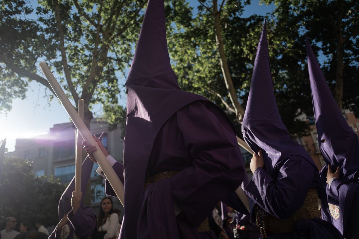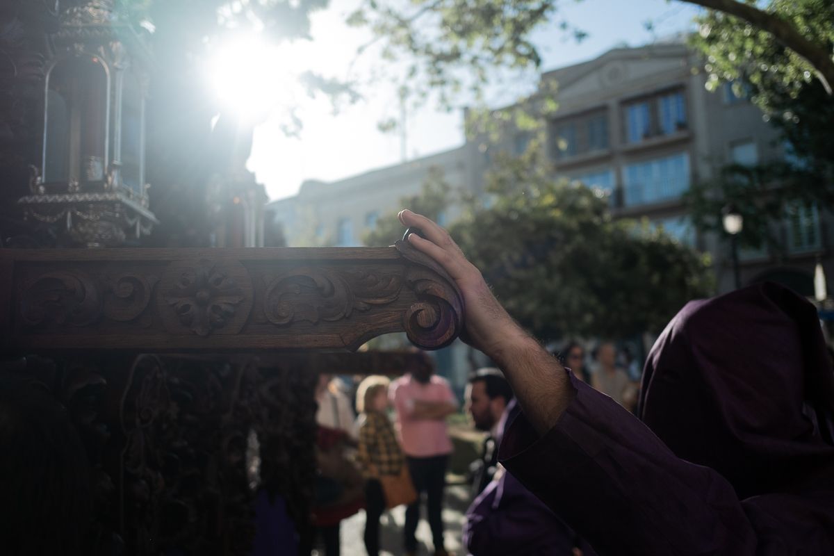 Costalero de la Salud con su molía controlando la hora en la Alameda Vieja. FOTO: MANU GARCÍA.