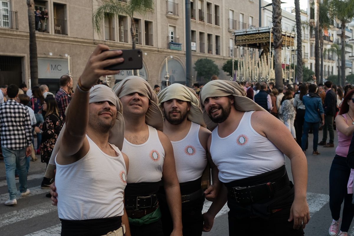 Costaleros de María Santísima de la O haciéndose un selfie para guardar el recuerdo del momento. FOTO: MANU GARCÍA.