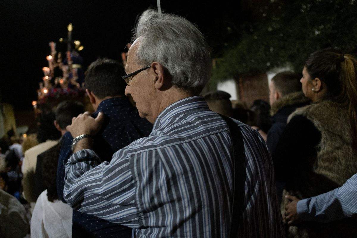 Padre e hijo acompañando al Cristo de la Salud en su bajada por la cuesta Hijuela del Agrimensor. FOTO: MANU GARCÍA.