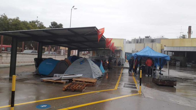 Los 38 trabajadores afectados de la empresa Zumosol Pernigotti han cumplido ya más de 100 días de protesta ante las actuaciones de dicha empresa. Acumulan más de tres meses durmiendo en los aparcamientos de la fábrica, situada en la localidad cordobesa de Palma del Río. Entre sus quejas está el impago de 10 nóminas, un ERTE declarado injustificado y la baja de todos ellos de la Seguridad Social.