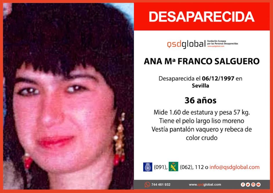 Este pasado 6 de diciembre se cumplieron 27 años de la desaparición de Ana Franco Salguero. Su caso es el más antiguo de personas desaparecidas en Sevilla, siendo la mujer que lleva más tiempo perdida en Andalucía.