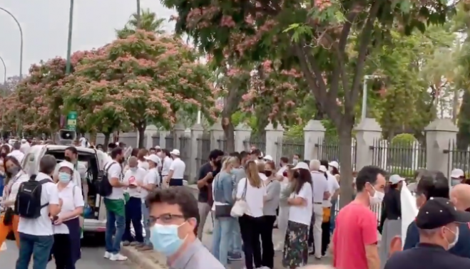 Los trabajadores de Abengoa han culminado la "gran manifestación" de este jueves ante el Parlamento de Andalucía, donde han sido recibidos por el consejero de Transformación Económica, Industria, Conocimiento y Universidad, Rogelio Velasco, y por la consejera de Empleo, Formación y Trabajo Autónomo, Rocío Blanco, quienes se han mostrado a favor de aprobar una declaración institucional de apoyo al colectivo.