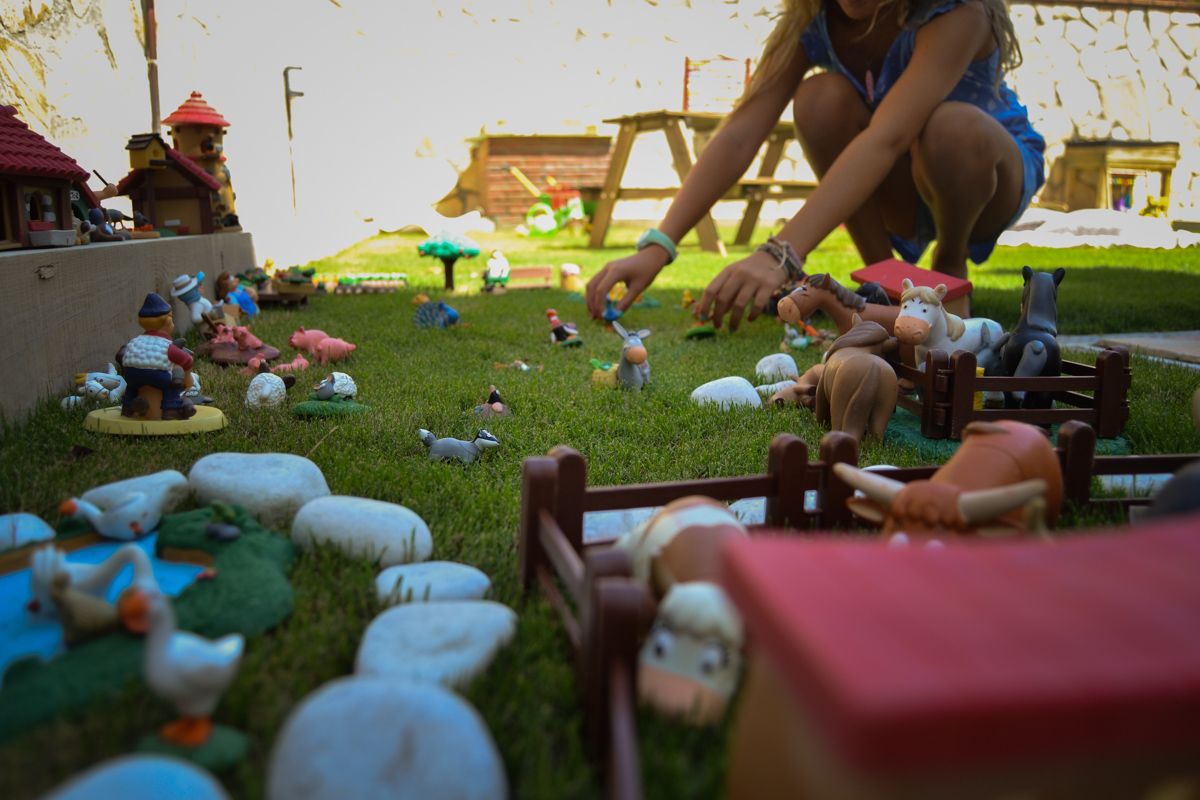 Una pequeña granja de juguete en el patio de Arrópame. FOTO: CLAUDIA GONZÁLEZ ROMERO.