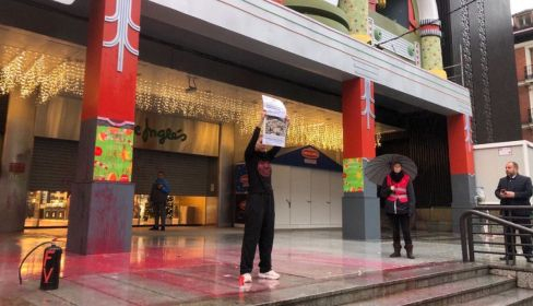¿Vandalismo contra los personajes que cantan villancicos ante miles de personas? Los responsables son cuatro activistas de Futuro Vegetal que han querido manifestar su protesta contra el modelo agroalimentario de esta forma. Consideran que "es responsable directamente de la emergencia climática actual".