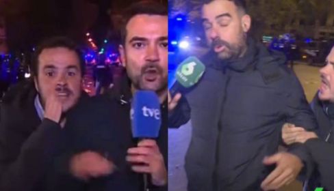 Gabriel López, reportero de RTVE, y Javier Bastida, de La Sexta, fueron insultados y agredidos en directo por varios manifestantes de la concentración que tuvo lugar el lunes por la noche frente a la sede del PSOE en la madrileña calle Ferraz.