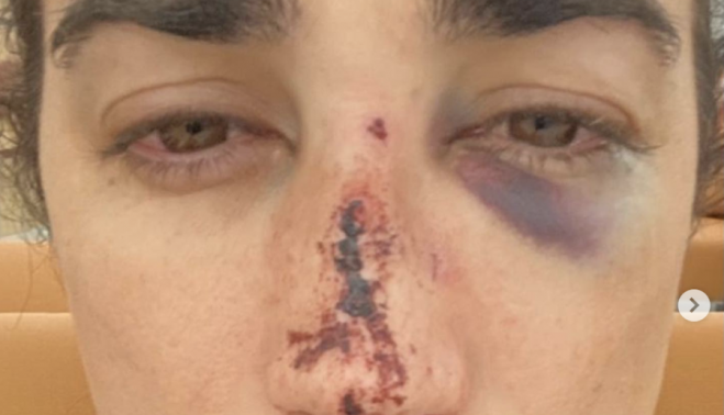 "Me pegó un puñetazo (o más de uno, no lo sé). Me ha roto parte de la órbita del ojo, la nariz por tres sitios y el pómulo. Me desperté inconsciente y cuando me miré al espejo me tuve que recomponer la nariz antes de llamar a la ambulancia. No siento la parte derecha de la cara y no sé si lo volveré a sentir. En estos momentos estoy entrando a una operación de dos horas para intentar recomponer los huesos de la cara. Ha intentado matarme", relata Divino.