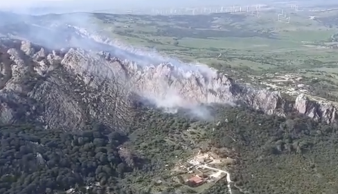 El viento sopla con mucha fuerza, lo que dificulta sobremanera poner bajo control el primer incendio forestal del año en la provincia de Cádiz.