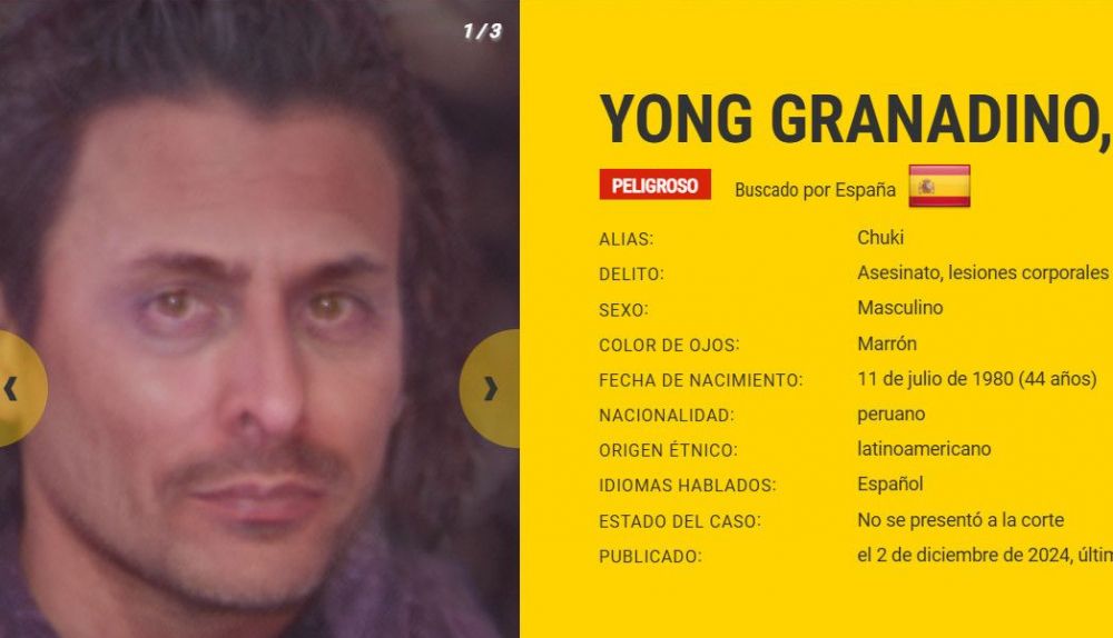 Alerta inernacional para hallar el paradero de Cristian Yong Granadino, alias Chuki, un peruano de 44 años que evadió a la Justicia en 2010 tras haber asesinado a su ex novia Silvia cuando ella tenía apenas 16 años en Leganés, Madrid.
