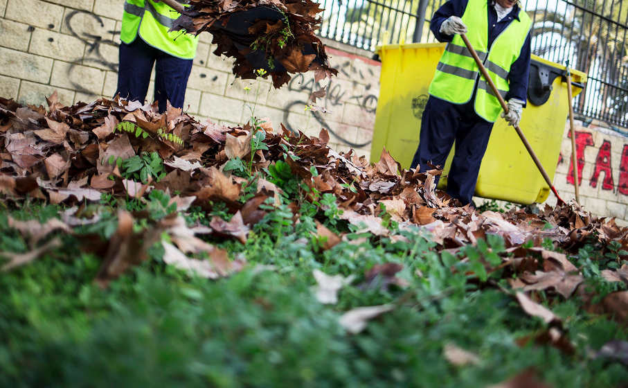 Trabajadores, limpiando unos jardines. FOTO: JAVIER FERGÓ