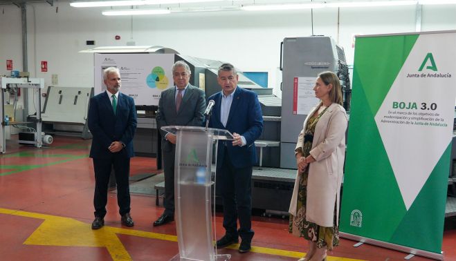 El consejero de la Presidencia, Interior, Diálogo Social y Simplificación Administrativa de la Junta de Andalucía, Antonio Sanz, realiza una visita a la sede del Boletín Oficial de la Junta de Andalucía (BOJA), donde ha avanzado un anuncio relevante en relación con la aprobación del proyecto BOJA 3.0 durante la próxima reunión del Consejo de Gobierno.