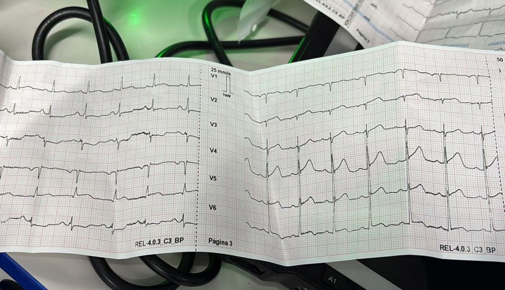 Tras iniciar maniobras de soporte vital avanzado, abunda el post, "se detecta una fibrilación ventricular, y aplicando el protocolo tras poco tiempo se consigue recuperar pulso. Tras observar en el electrocardiograma un infarto agudo de miocardio como causa de la parada cardiorespiratoria, activando código infarto a través del centro coordinador se traslada estabilizado al Hospital Juan Ramon Jiménez de Huelva para una angioplastia primaria por parte del servicio de Hemodinámica".
