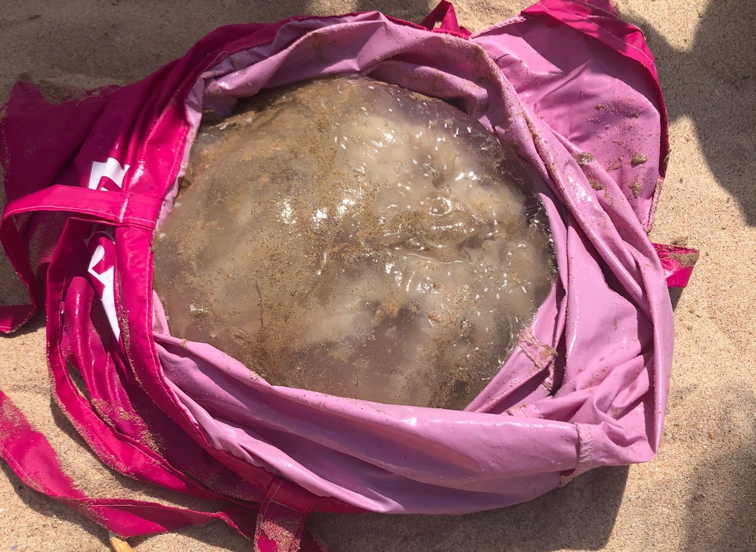 Puede llegar a medir más de medio metro de diámetro y pesar hasta 40 kilos. Son las llamadas medusas gigantes, que no dejan de aparecer durante este verano por la costa gaditana.