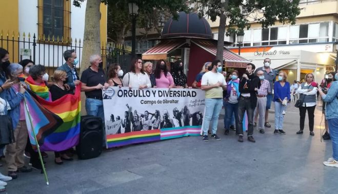 Diversos colectivos LGTBI se han concentrado en La Línea de la Concepción para apoyar a la joven transexual que fue agredida hace unos días. La joven, de 23 años, regresaba a casa de madrugada tras una actuación en una zona de bares cuando un individuo la empezó a seguir de una forma extraña.