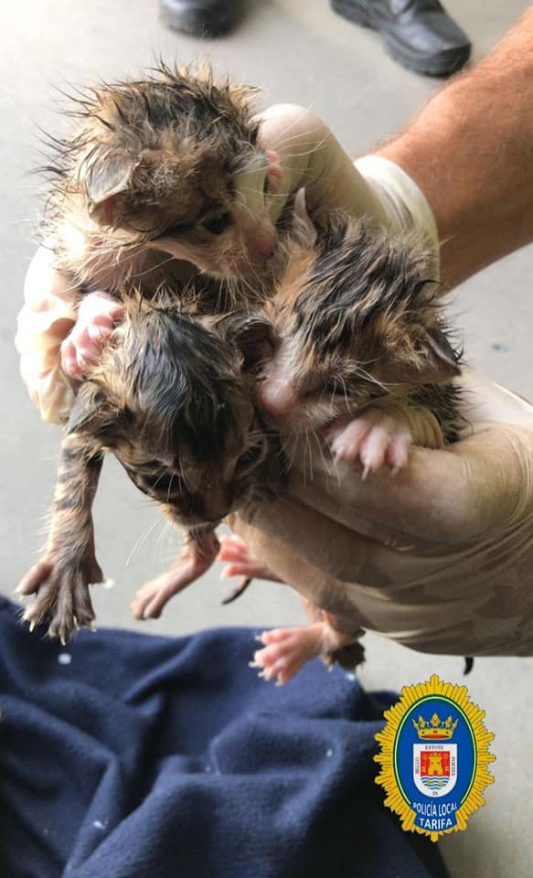 La Policía Local de Tarifa ha rescatado a seis gatitos recién nacidos que habían sido arrojados dentro de una bolsa en un contenedor de basura de la localidad gaditana.