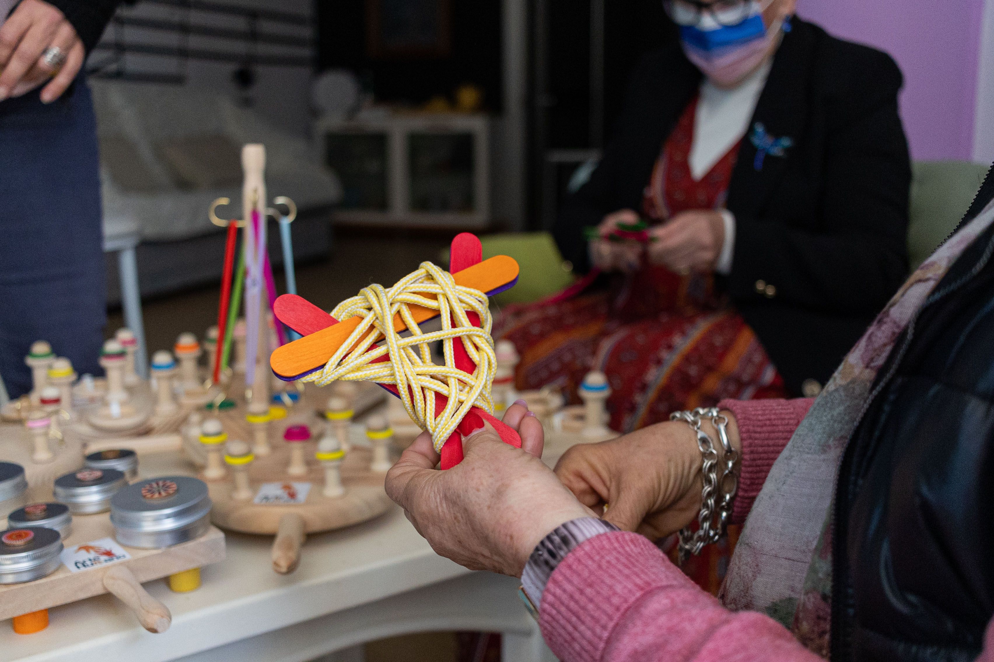 Justamente eso ha conseguido la fundadora de este proyecto, Alicia Castro, en varias ocasiones desde que se dedica a trabajar con las personas. “Para alguien que está perdiendo sus capacidades, esto es muy importante”, dice la argentina, natural de Buenos Aires, enrollando un cordón sobre una base de madera.