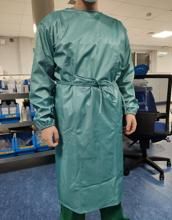 Un sanitario, con una de las batas fabricadas por Inditex.