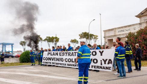 “Ya lo podéis grabar”, se escucha entre la marabunta de empleados que sale a la puerta de la planta para reivindicar sus derechos. Y no hubo corte del puente de hierro que da acceso al Arsenal de la Carraca porque la Policía Nacional descubrió (y retiró) los neumáticos que tenían escondidos en la zona. “No sé cómo se han enterado”, comenta algún que otro trabajador.