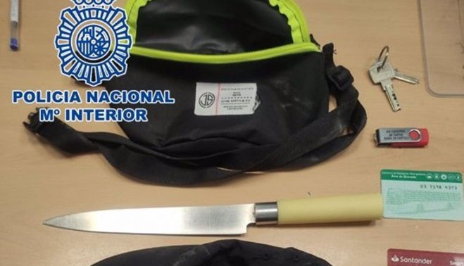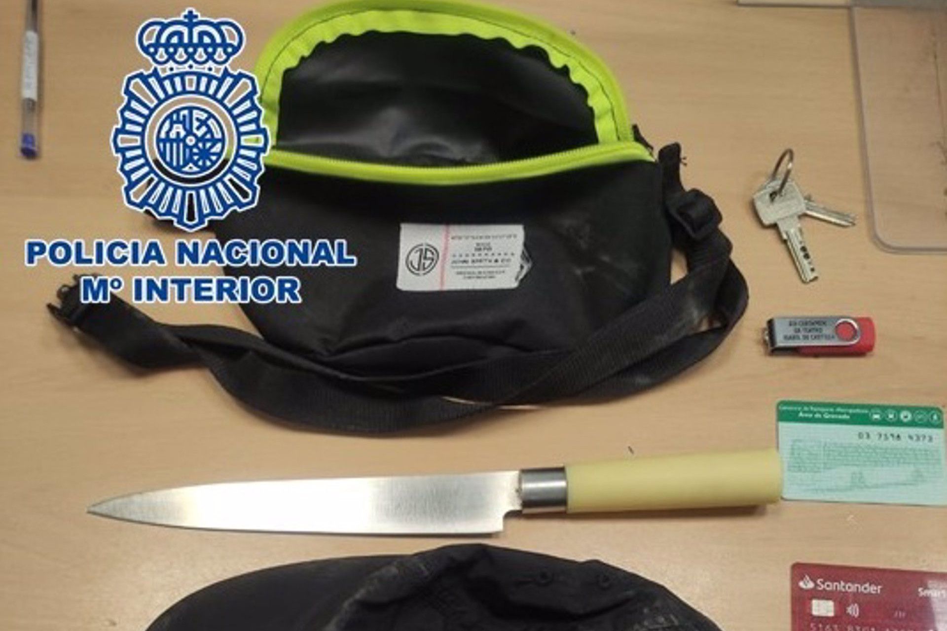 El cuchillo fue intervenido en el lugar donde lo habría arrojado y, bajo el vehículo donde se escondió, localizaron una riñonera con dos teléfonos móviles, unos auriculares, dos llaves, un pen drive, seis euros, varias tarjetas y una gorra. Estos efectos fueron posteriormente reconocidos por la víctima, a quien se le devolvieron los que eran de su propiedad.