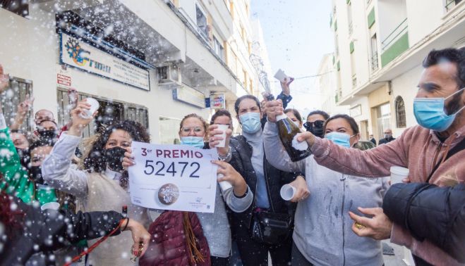Sobre las once y media de la mañana, los niños de San Ildefonso provocaron ese río de alegría que ha recorrido todo Barbate. Al cantar el 52.472, muchos vecinos saltaron al comprobar sus décimos. En Andalucía se han vendido 920 décimos de este número, 900 de ellos en la localidad gaditana —diez en Peñarroya-Pueblonuevo (Córdoba) y otros diez en Antas (Almería), con un millón de euros en premios en cada localidad—, aunque los millones también han llegado a Chiclana. Mucha culpa de ello tienen las peñas carnavalescas Los Robinsones, de Barbate, y Los Hombres del Campo, de Chiclana, que están hermanadas y jugaron el mismo número entre sus socios y conocidos. Un total de 380 décimos.