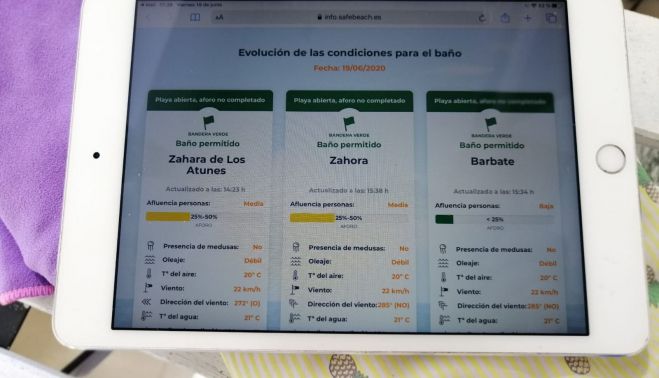 El Ayuntamiento de Barbate, a través de la delegación de Playas, pone en marcha un servicio de información a tiempo real sobre el estado de las playas del término municipal. A través de un enlace web ( https://info.safebeach.es/get!01587e35f415e20269cd5f069a3b4ae5 ), se podrá conocer el aforo de la arena, la temperatura del agua o la velocidad del viento en las playas de Barbate, Zahara de los Atunes, Caños de Meca o Zahora.