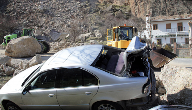 Momentos de gran tensión los vividos este domingo en la A-395, la carretera de Sierra Nevada, en Granada. Los servicios de Emergencias 112 Andalucía han confirmado que entre los cinco heridos en el desprendimiento de este domingo de una ladera a la altura de Güejar-Sierra se encuentran un bebé de cuatro meses y un niño de dos años, además de dos mujeres de 36 y 60 años, y un hombre de 65. Todos han sido evacuados al Hospital de San Cecilio.
