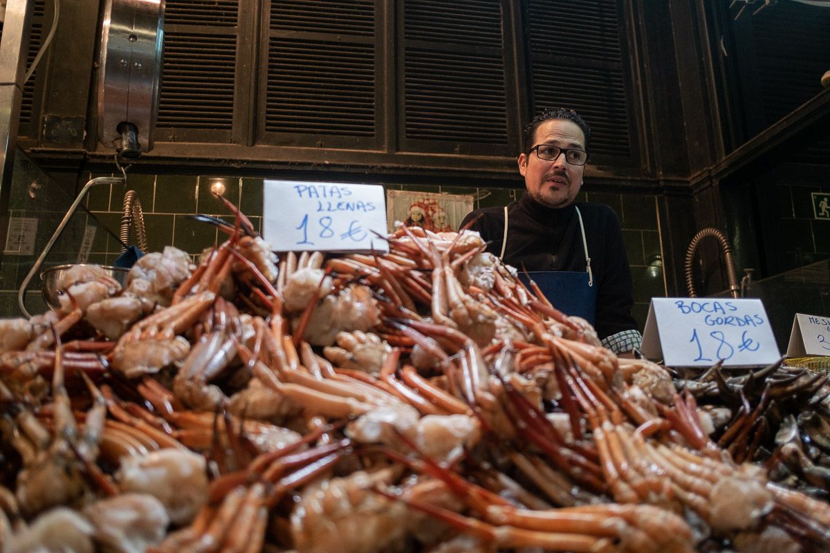 Jesús no pregona, pero tiene ángel vendiendo. Cuenta anécdotas, cuenta recetas de cómo prepara los pescados a sus hijos, tiene una niña y un niño, y se bebe un buchito de cerveza mientras afila los cuchillos a la velocidad de la luz. El Cuevas tiene a rebosar su puesto de género. Se nota que diciembre tiene ‘r’ —dicen los expertos que en los meses con ‘r’ el marisco es abundante— y, claro está, se acerca la Navidad. Será la Navidad del covid. Una extraña celebración marcada por la pandemia y la tragedia. Aun así, con allegados y familiares, habrá cenas y almuerzos especiales.