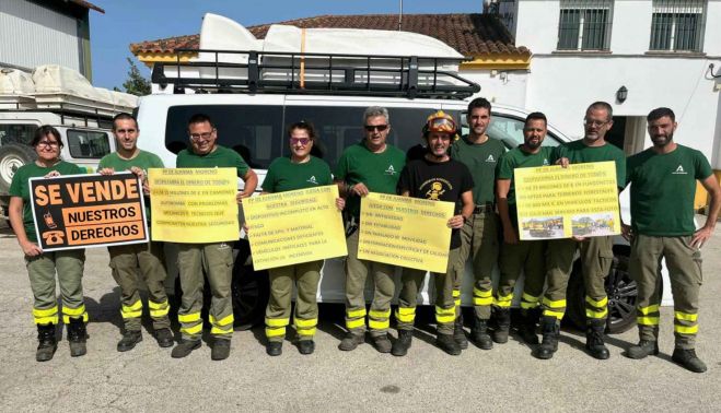 La tensión sigue en aumento entre los trabajadores del Plan Infoca y la Junta de Andalucía, después de que los efectivos del dispositivo de prevención y extinción de incendios forestales hayan denunciado públicamente las deficiencias estructurales y materiales con las que, aseguran, afrontan la campaña de este verano. Bajo un cartel en el que se leía “Se vende: nuestros derechos”, han protestado contra lo que consideran un abandono institucional. "Se vende: nuestros montes", "No se vende: nuestra dignidad" o "Se vende: nuestro futuro", han sido otras de las pancartas exhibidas por integrantes del Plan Infoca.