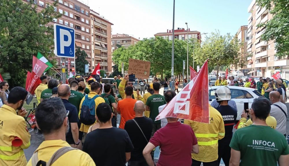Bomberos del Infoca han salido este viernes a las calles de Córdoba para reivindicar sus derechos y denunciar las actuales condiciones laborales en las que tienen que realizar sus trabajos en temporada alta de incendio. De hecho, los manifestantes aseguran que es el Plan Infoca más mermado de los últimos años.