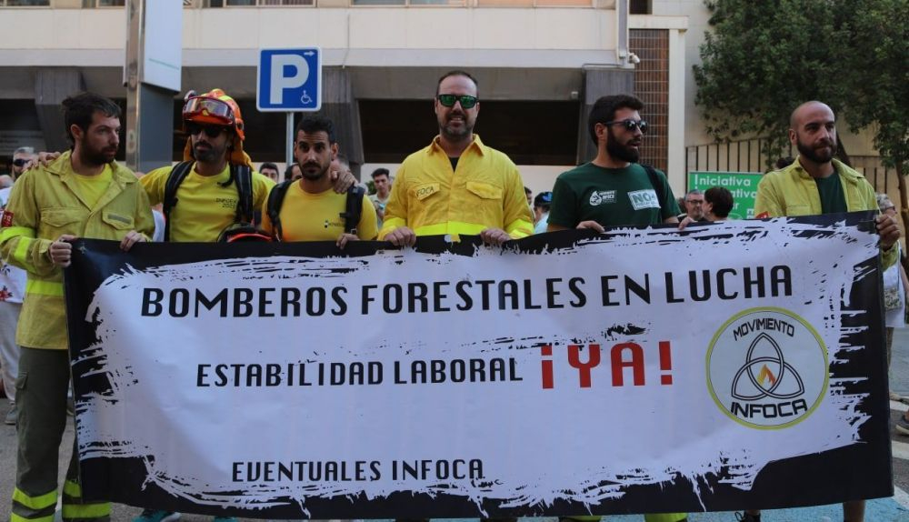 Al mismo tiempo, en Córdoba, un grupos de bomberos forestales del dispositivo se concentraban para reclamar sus derechos. Rubén Flores, bombero forestal, miembro de Movimiento Infoca, enumeró las peticiones del colectivo.