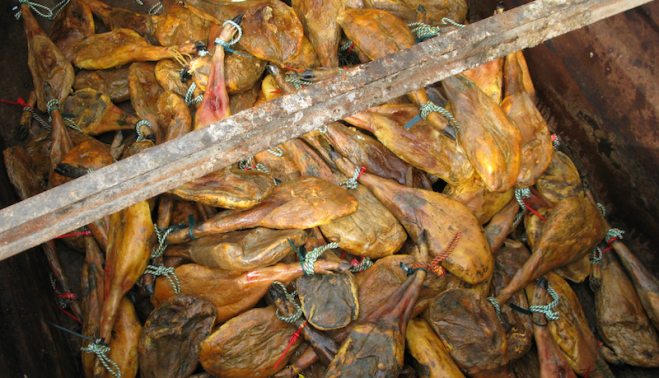 La organización criminal se encontraba activa desde hace unos años en la Sierra de Huelva y, en su actividad, se dedicaba a la venta fraudulenta de jamones y paletas manipulando el etiquetado de origen de las piezas para reetiquetarlo y vender el producto con su propia marca.