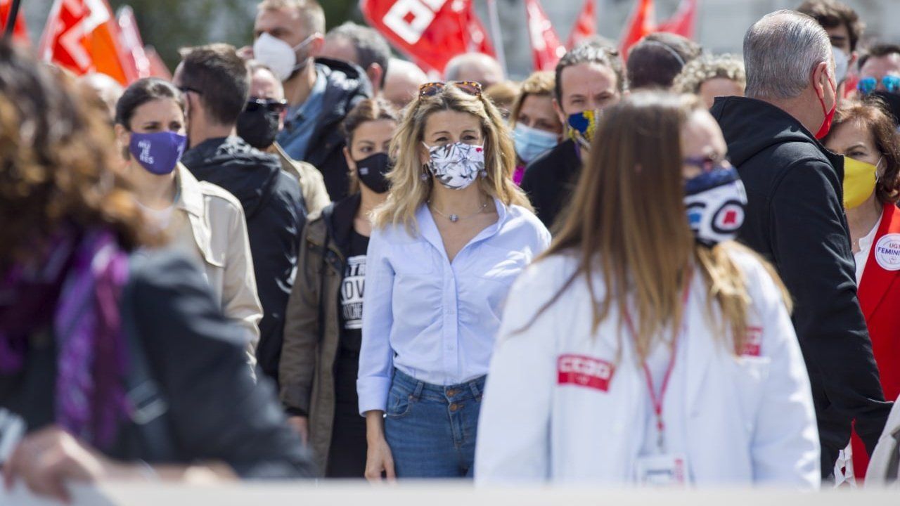 La manifestación en Madrid ha alcanzado la Puerta del Sol a las 13.00 horas con clamores de los asistentes a la manifestación de "sí se puede" y también pidiendo sacar "a los fascistas de las instituciones". A la llegada a Sol, centenares de personas han gritado "Yolanda presidenta" a la vicepresidenta tercera del Gobierno y ministra de Trabajo, Yolanda Díaz.