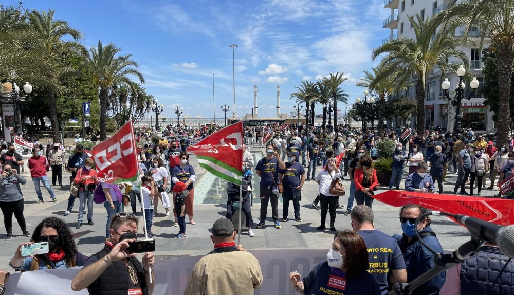 En concreto, Cádiz, que afronta actualmente el cierre de la planta del consorcio aeronáutico europeo Airbus de Puerto Real, acogido el acto central de los sindicatos mayoritarios con una manifestación desde los Jardines de Varela de Cádiz hasta la Plaza de San Juan de Dios, encabezada por la secretaria general de CCOO-A, Nuria López; y su homóloga de UGT-A, Carmen Castilla.