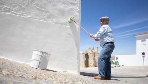 En la población de la Janda, así como en otras de la provincia o de Málaga, el óxido de calcio es más que un material. Es algo que está íntimamente ligado a la forma de ser de unos pueblos que no se entienden sin sus fachadas blancas. Encaladas. Libres de virus, de paso. "Mi madre, incluso le echa un poco de Zotal (desinfectante) cuando las paredes tienen mucha humedad", cuenta Loli. "Yo soy muy de cal, a mí me encanta", agrega Juana.