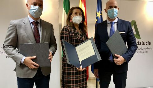 La Consejería de Agricultura, Ganadería, Pesca y Desarrollo Sostenible, a través de la Agencia de Gestión Agraria y Pesquera de Andalucía (Agapa), y la Asociación Empresarial Alimentos de Andalucía, Landaluz, han firmado un acuerdo de colaboración que permitirá promocionar los productos andaluces de calidad en los lineales de centros comerciales y tiendas gourmet de distintos puntos del país, como Andalucía, Madrid y Guipúzcoa. La consejera, Carmen Crespo, y el presidente de Landaluz, Álvaro Guillén, han firmado recientemente el convenio que permitirá esta iniciativa, que busca “fidelizar consumidores y consolidar la buena imagen de la industria agroalimentaria andaluza", ya que, según ha señalado la consejera, “los buenos datos de la industria agroalimentaria en mercados interiores y exteriores, ponen de manifiesto la fortaleza de un sector estratégico para Andalucía que está siendo clave en la reactivación de nuestra economía”.