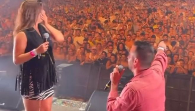 Jesús Garay, concejal del PP de El Puerto de Santa María, aprovechó el cierre del Puro Latino Fest para pedirle matrimonio a su novia.