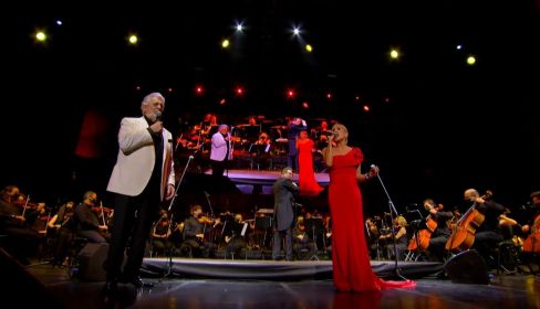 Plácido Domingo y Marta Sánchez cantaron a dúo por primera vez en un escenario el himno de España, creado por la cantante madrileña, en el Festival Starlite de Marbella.